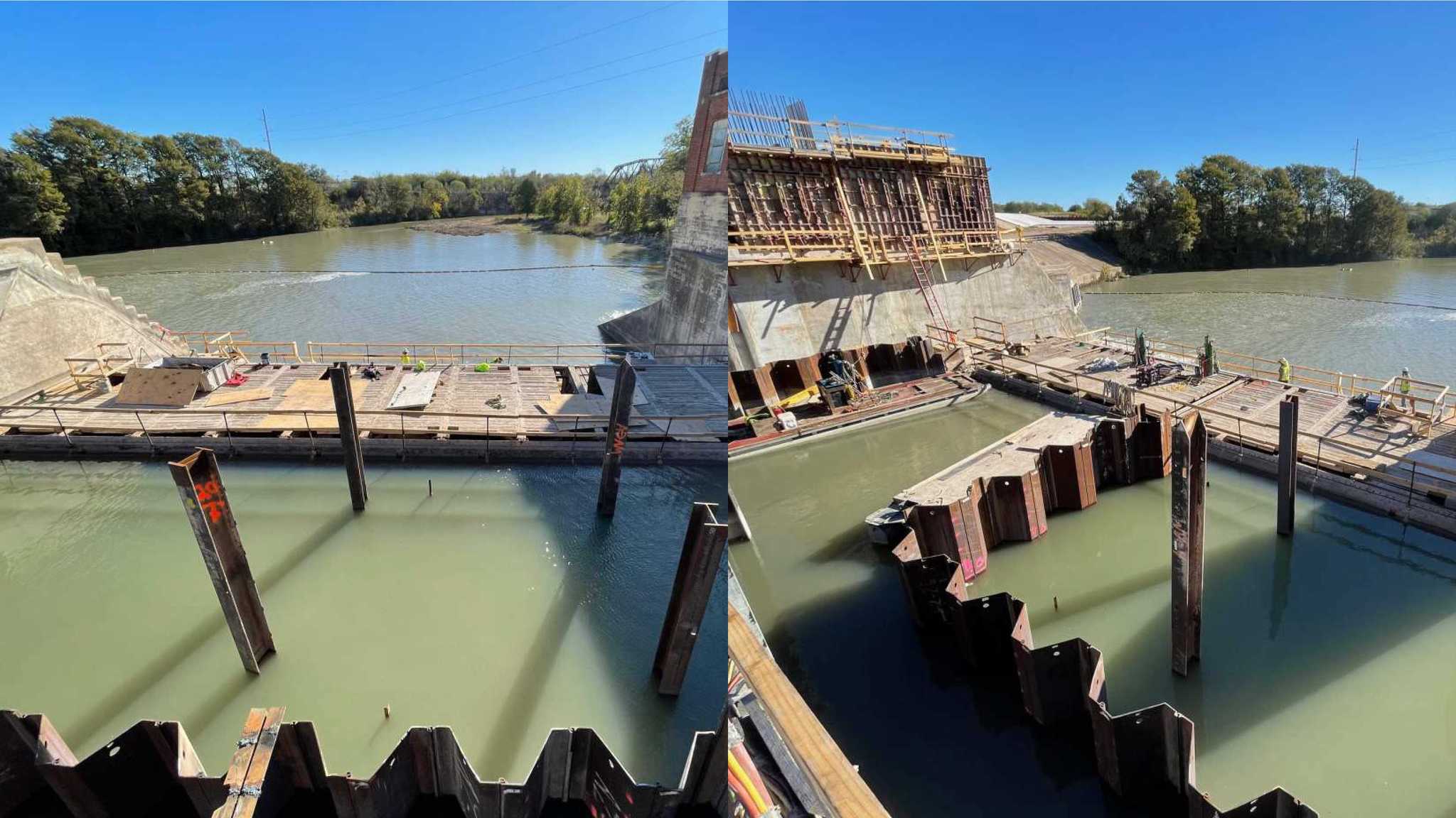 - Bay 3 sheet pile cofferdam waler and sheets - installed
