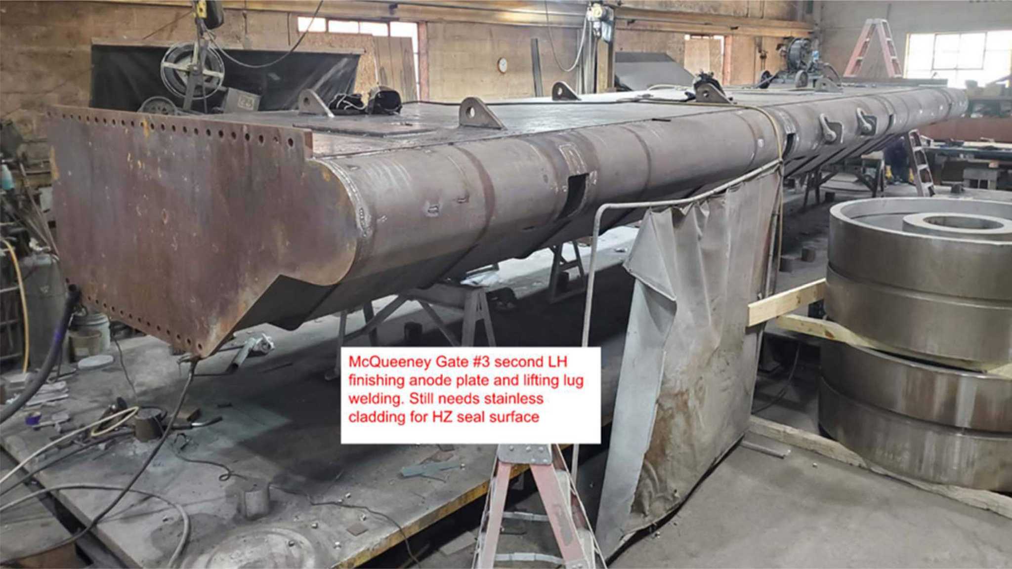- Grout hinges, stop pads, trunnions, & dogging arms – Completed