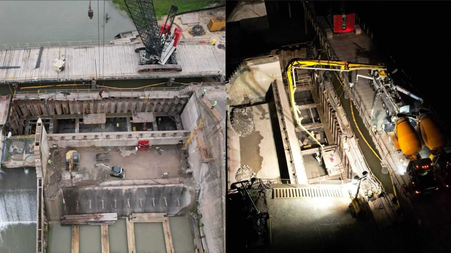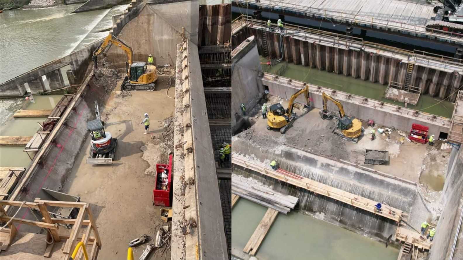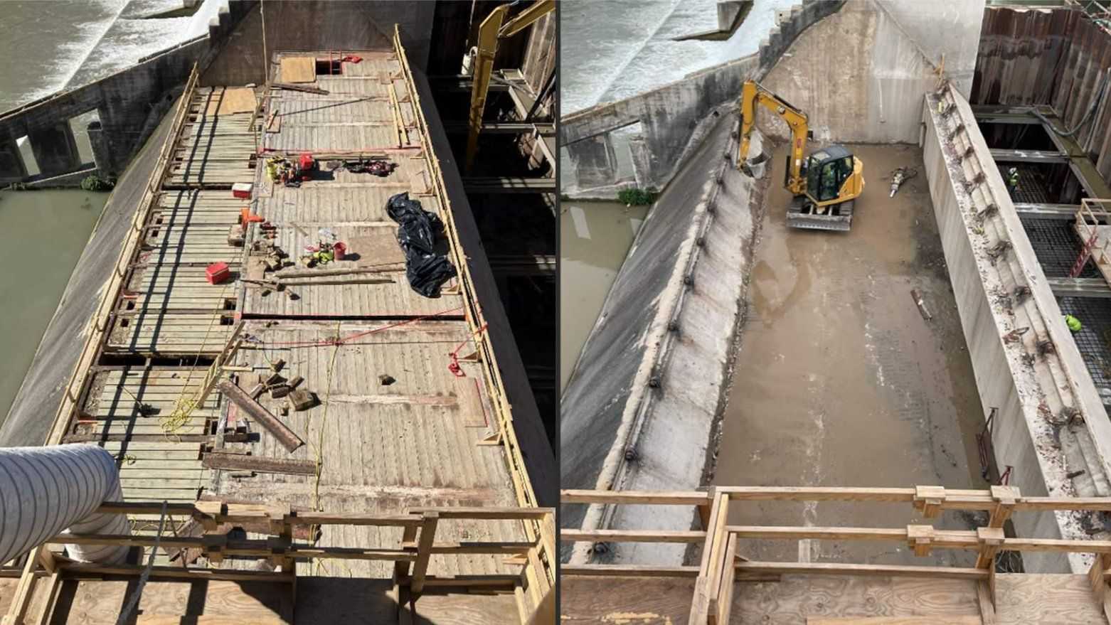 - Continue dam armoring earthwork and concrete placement
