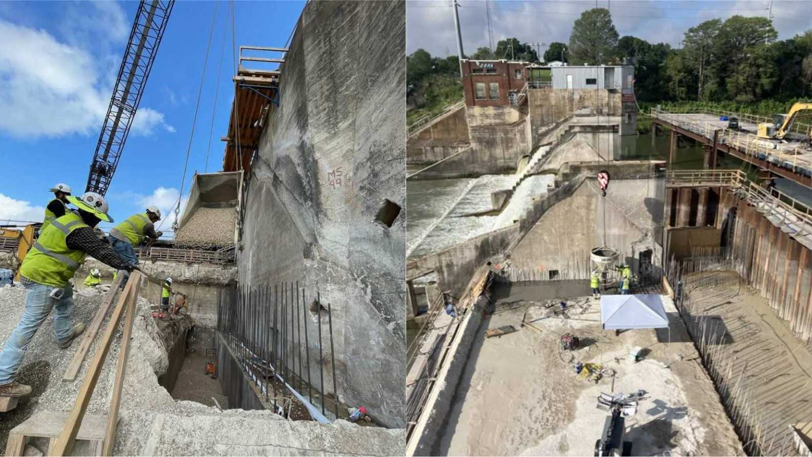 - Continue dam armoring earthwork, and concrete placements