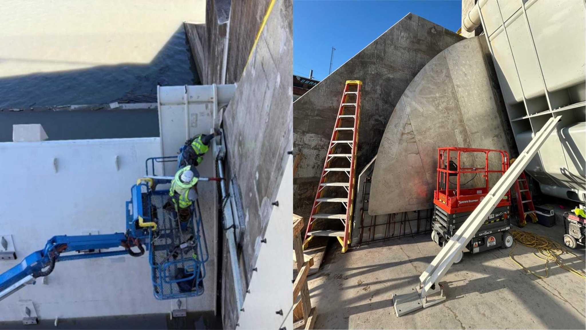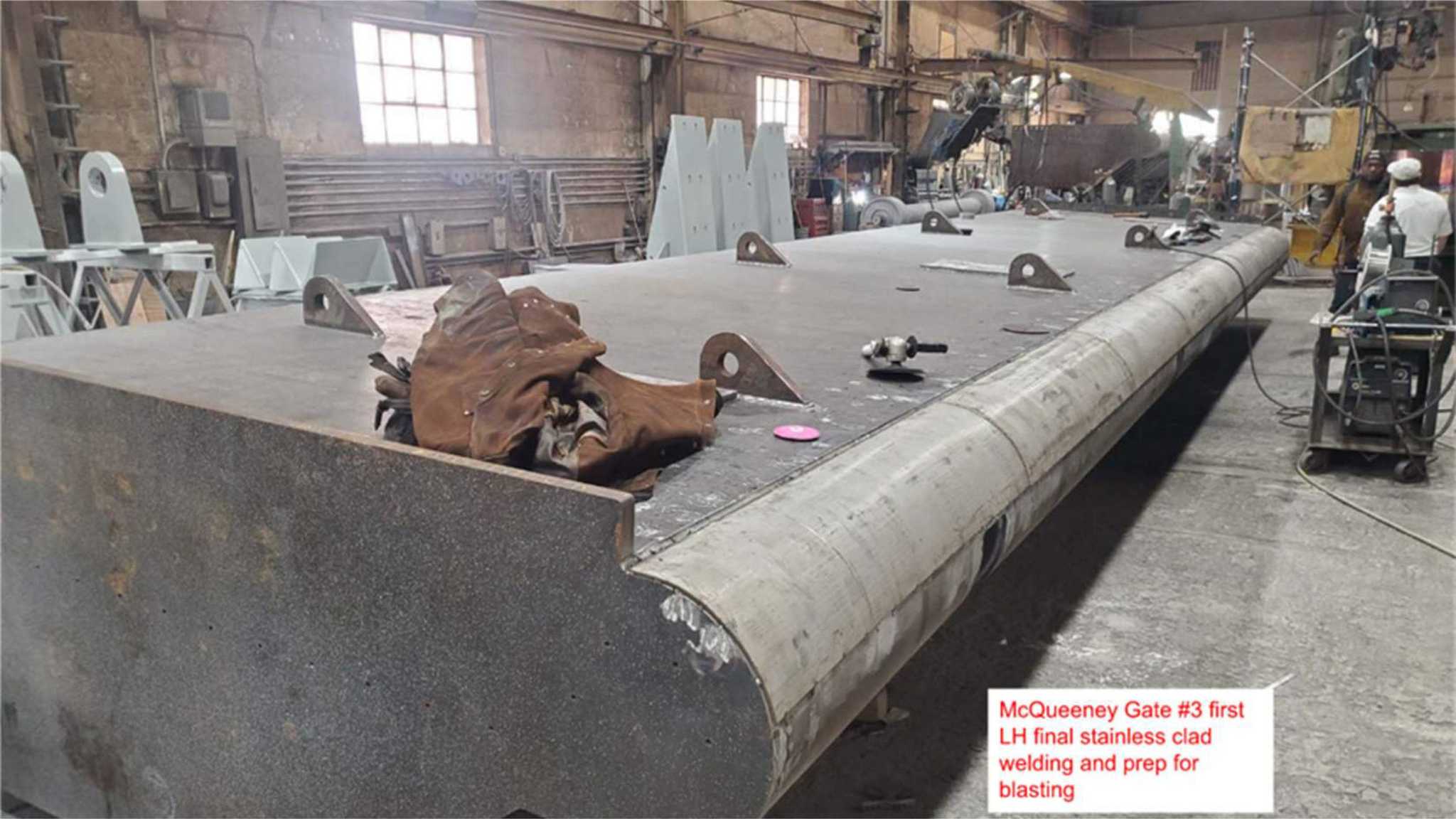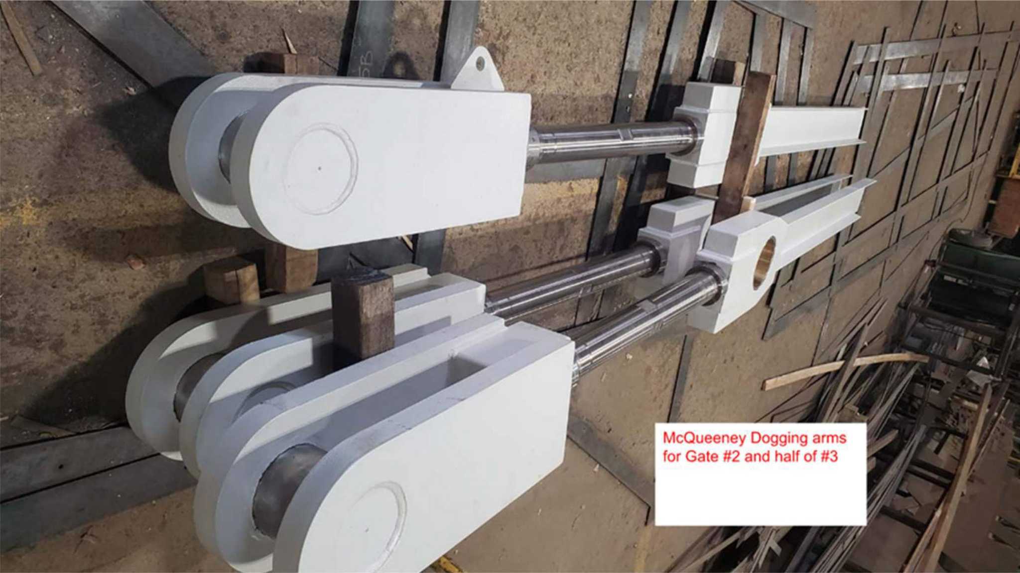 - Grout hinges, stop pads, trunnions, & dogging arms – Completed